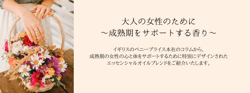 イギリスのペニープライス本社のコラムから、成熟期の女性の心と体をサポートするために特別にデザインされたエッセンシャルオイルブレンドをご紹介いたします。