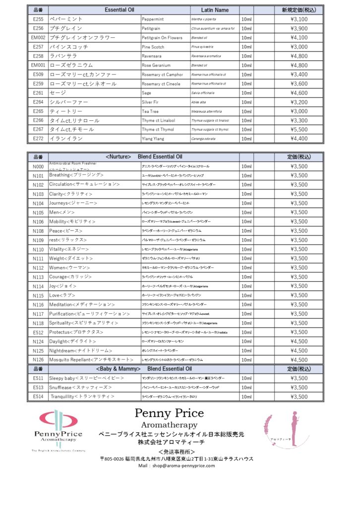 平素よりペニープライス社のアロマオイルをご愛顧いただき、誠にありがとうございます。